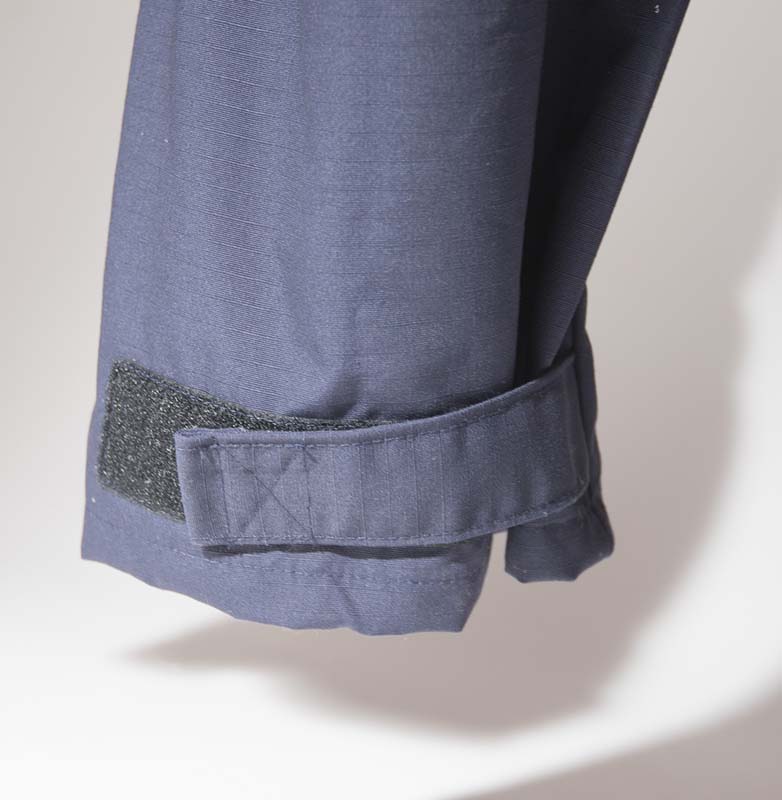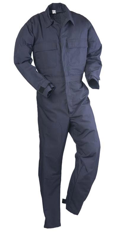 This coverall has an expandable waistband for a snugger fit at the waist. It has a fly to neck covered zipper and adjustable VELCRO® at the wrists and ankles. The legs are flared from the knee to the ankle so the user can slip it on over their boots. We added two large covered chest pockets with VELCRO® closures and 2 pencil pockets on the upper arms.
