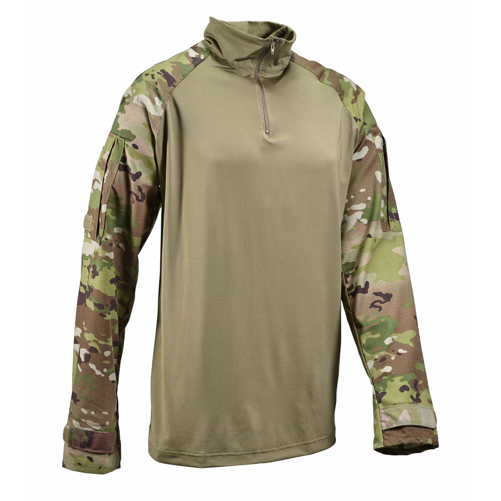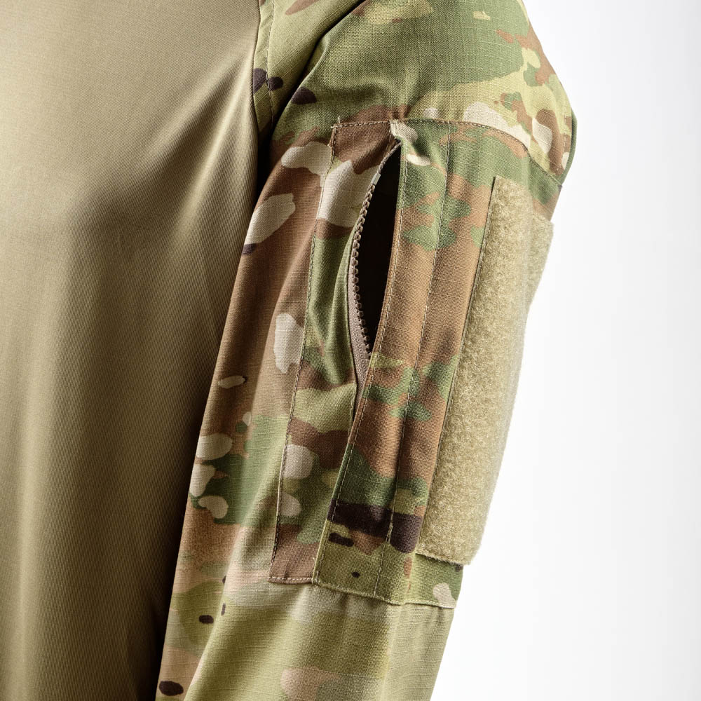 United’s Fortiflame® OCP Combat Shirt is constructed from our Level II body fabric which will allow freedom of movement and keep the user comfortable and dry. Fortiflame® products are designed to provide additional protection from the environment while maintaining flame resistant standards. The fabric will wick moisture as well as resist odors. The nylon/cotton ABU ripstop sleeves provide durability and freedom of movement.