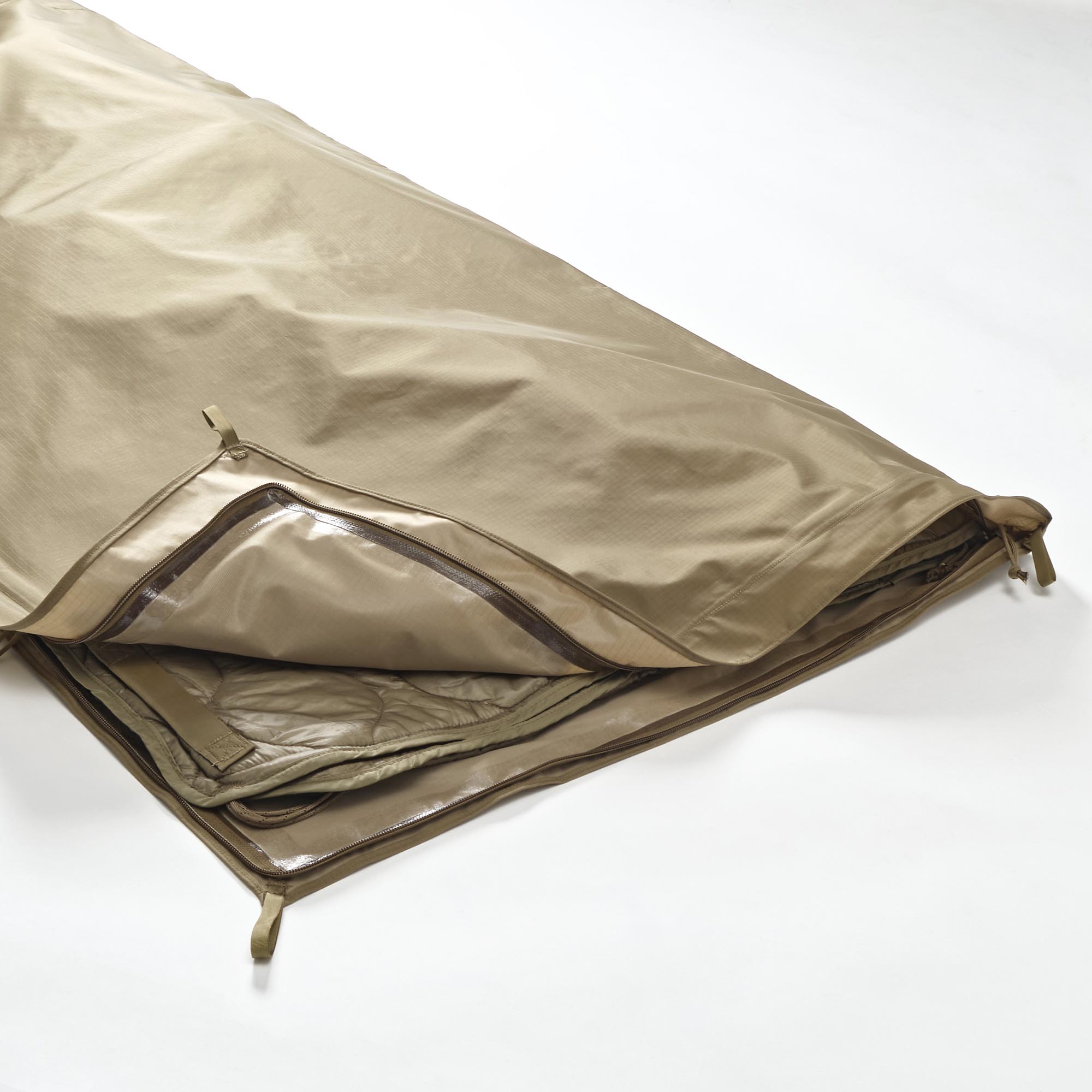 United’s Xtreme multi-use lightweight sleeping bag is constructed using Radiance™ fabric which provides thermal and signature reflective protection. Our sleeping bag will provide maximum comfort and protection in extreme conditions. Its light-weight/low bulk construction provides warmth and uses minimum storage space. The bag has a mesh and quilted head covering various conditions. It also has handles on each side for use as a casevac. Multiple zippers allow for venting at different areas.