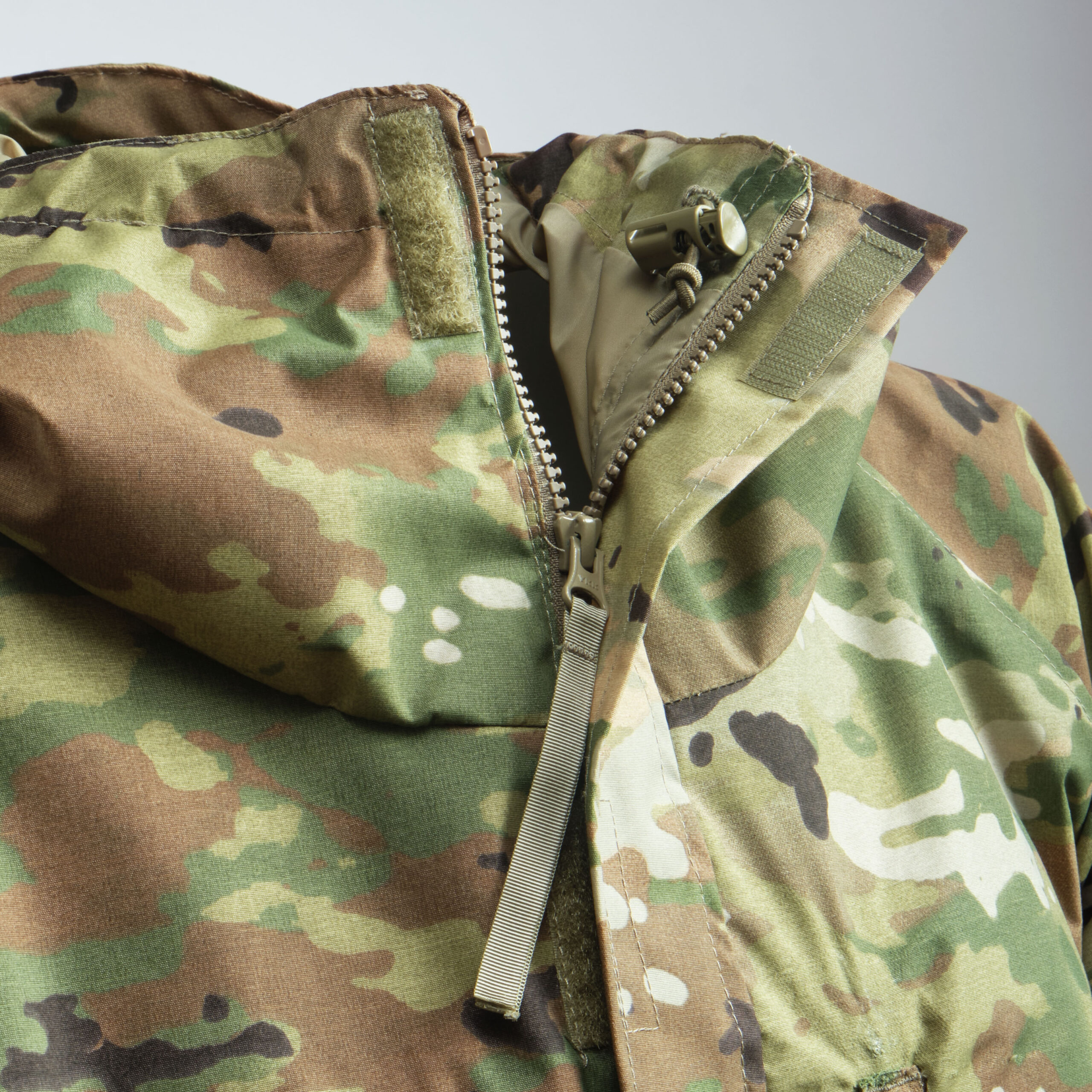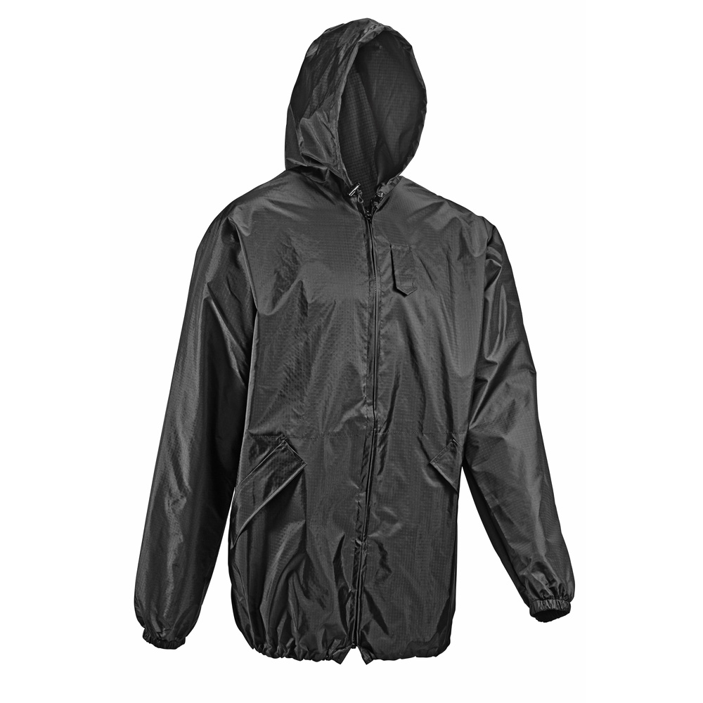 United’s rain jacket is constructed from 70 denier nylon ripstop fabric. The fabric is wind and water resistant for protection during inclement weather.It has an adjustable hood with rain visor and elastic at the wrists. There is a draw cord around the waist.